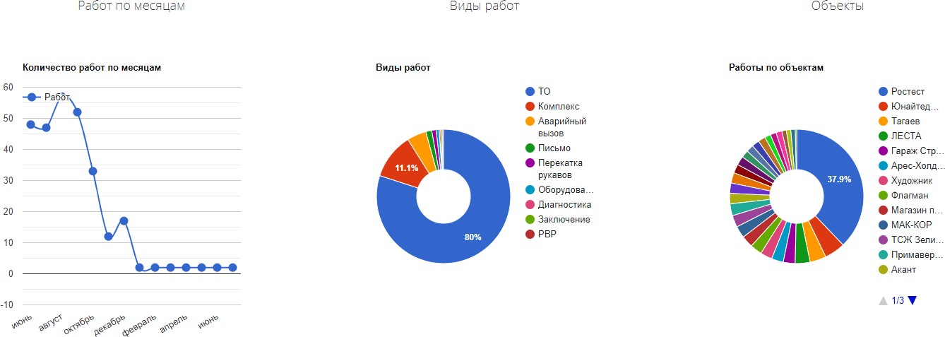 Каждая запись кликабельна и ведёт к индивидуальному отчёту. К примеру, Отчёт по работам на объекте.