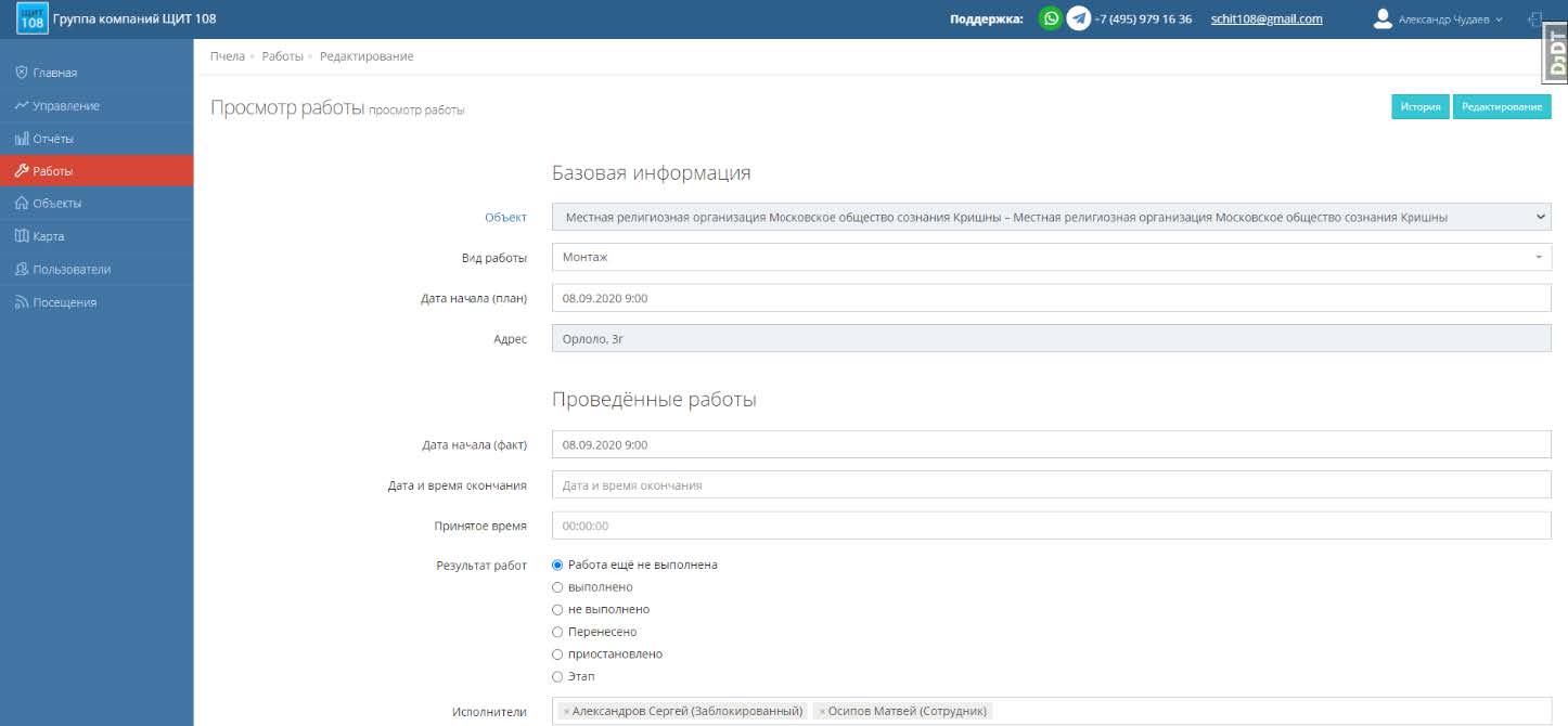 В нашей системе работа имеет разные варианты интерфейса карточки (набор полей) в зависимости от вида работ и других условий, но ряд параметров для описания выполнения есть всегда: